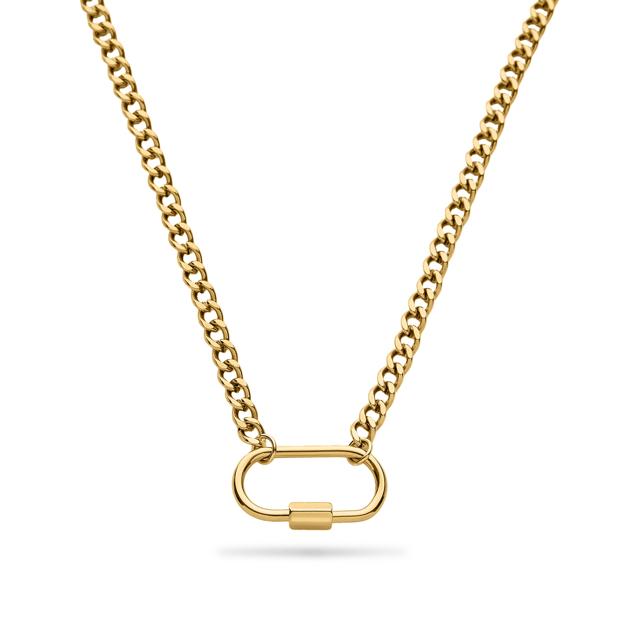 Introducing Lexi. Sleek lines, subtle strength and your signature chain, redefined. The Lexi Necklace pairs a polished carabiner clasp with a bold curb chain for that perfect mix of minimal and modern. Designed to catch the light (and attention) from your first coffee to your last call. Available in gold or silver. Wear her solo for that effortless “I just threw this on” confidence, or stack her with softer chains for layers that feel effortless.