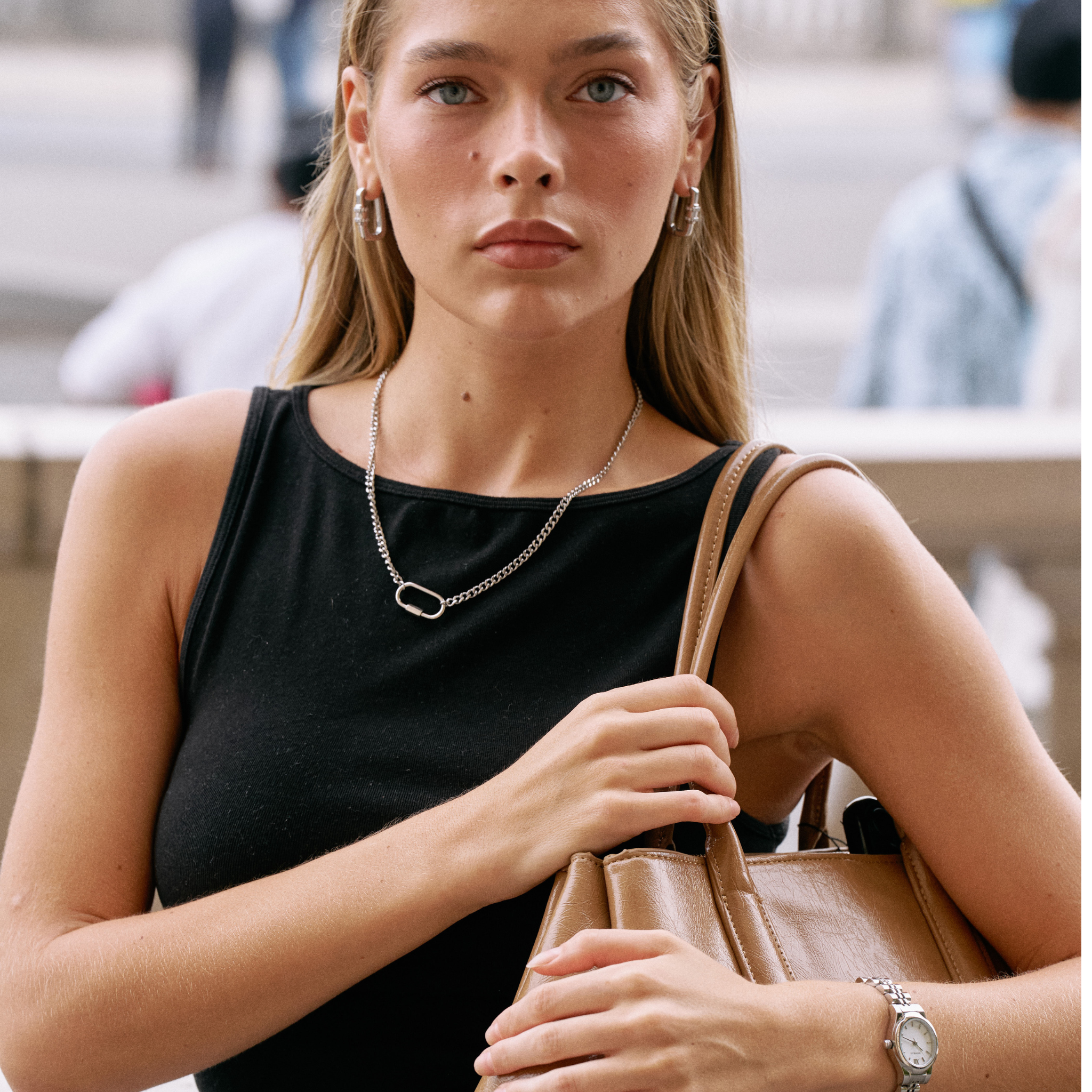 We use high-quality stainless steel built to last. No tarnishing, no turning green, made to be worn on repeat. Every piece is coated in PVD (physical vapor deposition), a premium plating process that delivers long-lasting colour and a polished, elevated finish. Stronger than traditional gold plating. Perfect for the girl on the go and made for your kind of schedule.